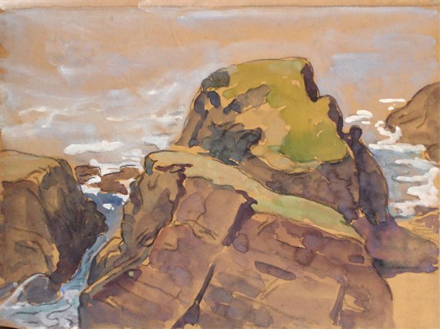 Andrée LAVIEILLE. Près de la pointe du Van. Aquarelle gouachée. Signée au dos. 24 x 31 cm.