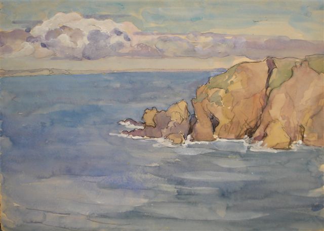 Andrée LAVIEILLE. "Pointe de Castelmeur". Aquarelle gouachée. Signée et titrée au dos. 37 x 51 cm.