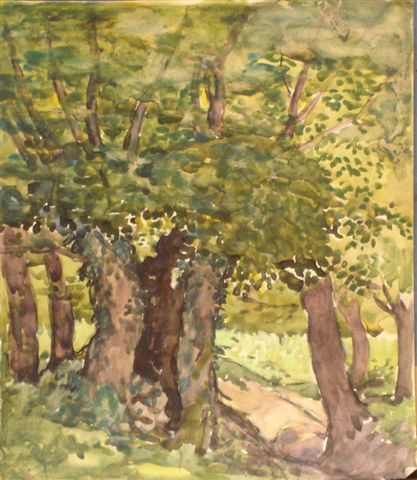 Andrée LAVIEILLE. Le vieux saule à "Kerzellec" ( Le Pouldu). Aquarelle. Signée au dos. 25 x 21 cm.