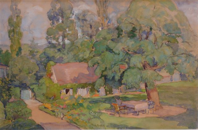 Andrée LAVIEILLE. "Le Gué Turlure, Cocherel" près de Pacy-sur-Eure. Aquarelle, et crayon. Signée et légendée au verso. 32 x 48 cm.