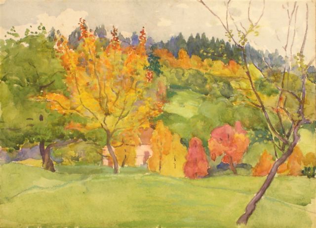 Andrée LAVIEILLE. "L'Automne en Savoie" en 1931. Aquarelle. 23 x 32 cm.