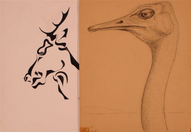 Michel TUFFRAU. Carton à dessins et ensemble d'études au crayon, au fusain signées MT.