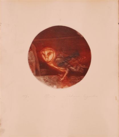 Ensemble de deux gravures, La Chouette Effraie et Groupe de Flamands Roses. 29 X 25 cm.