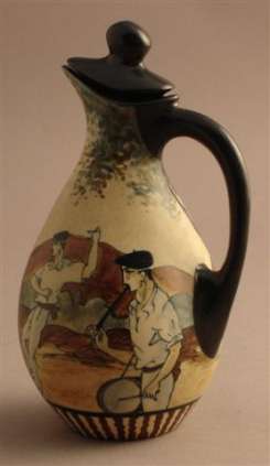 VERSEUSE couverte au décor de grand feu d'un couple de paysans basques dansant aux abords d'une habitation. Marquée RF en creux.
