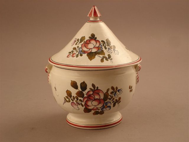 SOUPIÈRE en faïence. Décor de roses chatironées.