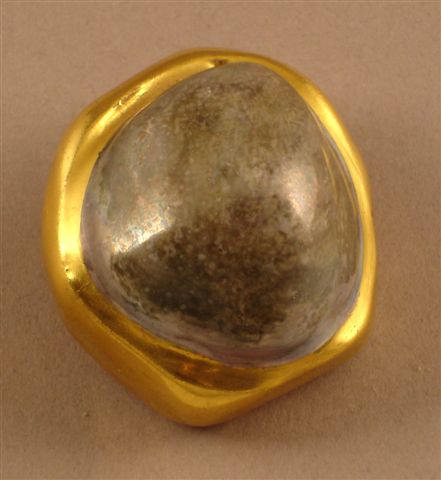 PENDENTIF en céramique. Rond, imitant une pierre sertie d'or.