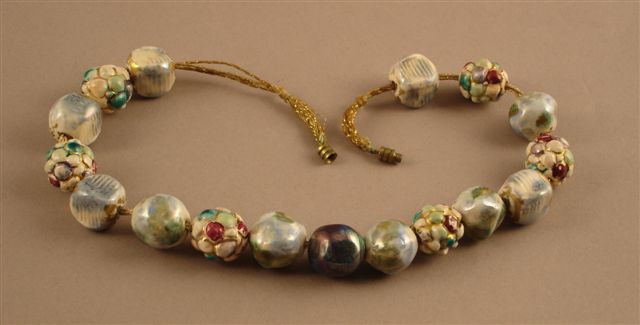 COLLIER DE PERLES polychromes en céramique.