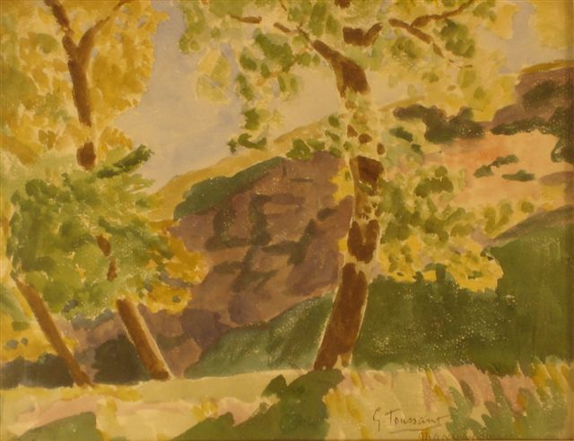 Élève et collaborateur de Bourdelle, Toussaint sculpteur de monuments, est aussi un aquarelliste recherché. La vente de son atelier a eu lieu le 17 janvier 1988 à Vendôme.