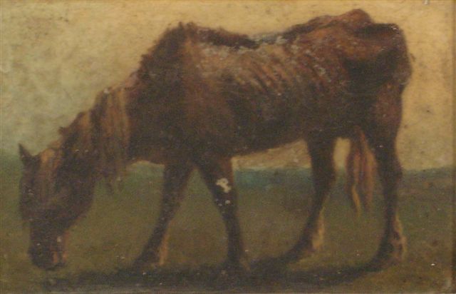 École EUROPÉÈNNE du XIXème.Cheval dans un champ. Huile sur Panneau.16...