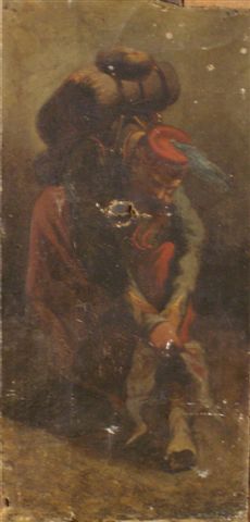 École FRANÇAISE de la fin du XIXème.Fantassin blessé. Toile.27 x...