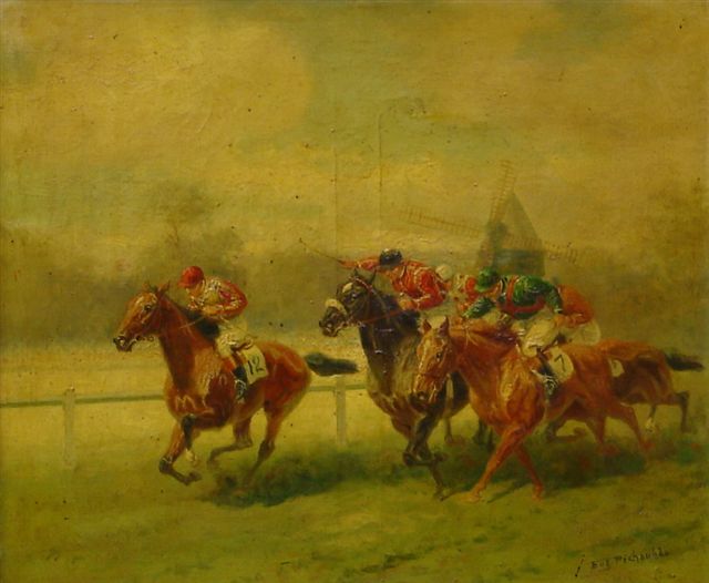 PECHAUBES Eugène.Course à Auteuil. Toile, signée en bas à droite....