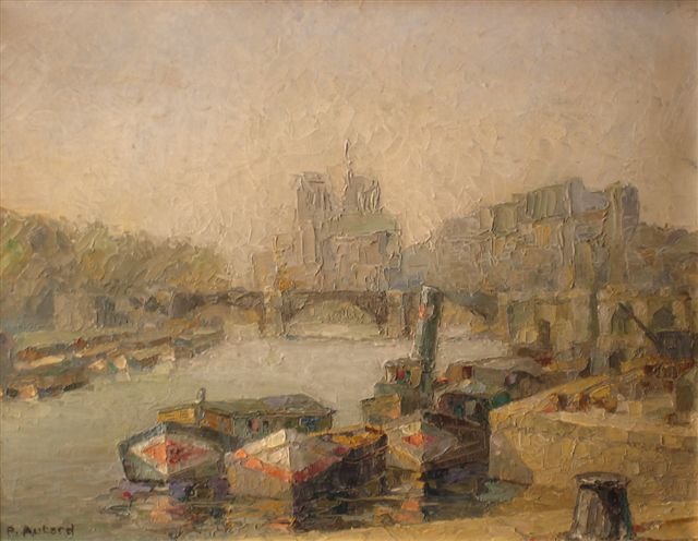 AUTARD. Quais de Seine et le Pont Neuf à Paris. Huile sur panneau. Signé en bas à gauche.