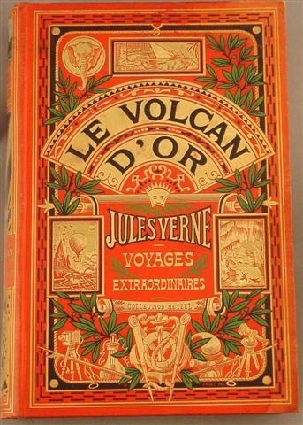 Percaline rouge. Plat sup. à l'éventail (soleil rayonnant à la base de l'éventail) et à une tête d'éléhant. (Engel). ill. de G. ROUX.