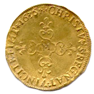 Écu d'or au Soleil, 1636. 3,43g M = Toulouse. Très beau.