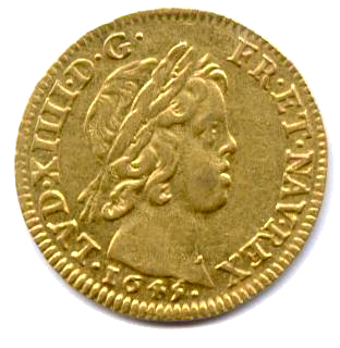 Louis d'or à la mèche courte, 1645. 6,71g