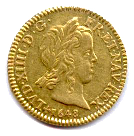 Demi-louis d'or à la mèche longue, 1648. 3,34g