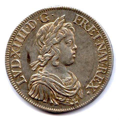 Buste lauré, drapé et cuirassé du roi enfant, avec la mèche courte. Etoile en fin de légende. Couronne de laurier avec baies. R/. Écu de France couronné. Point initial. Lettre d'atelier à la pointe de l'écu et millésime en fin de légende.