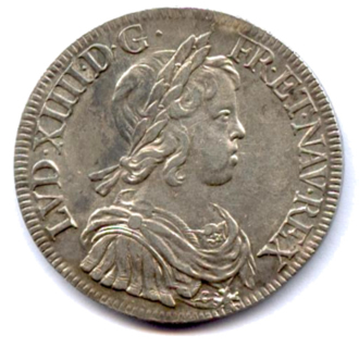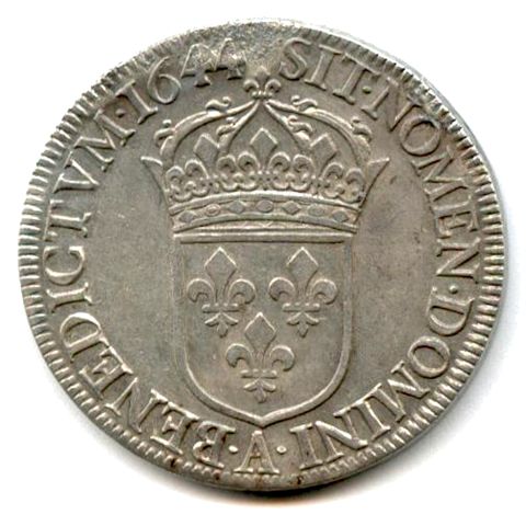 Écu d'argent à la mèche courte, 1644. 27,32g