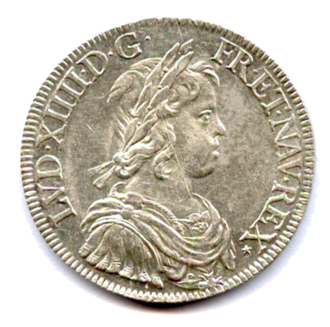 Buste lauré, drapé et cuirassé du roi enfant, avec la mèche courte. Etoile en fin de légende. Couronne de laurier avec baies. R/. Écu de France couronné. Point initial. Lettre d'atelier à la pointe de l'écu et millésime en fin de légende.