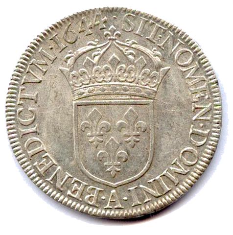 Écu d'argent à la mèche courte, 1644. 27,39g