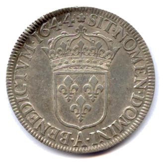 Écu d'argent à la mèche courte, 1644. 27,21g