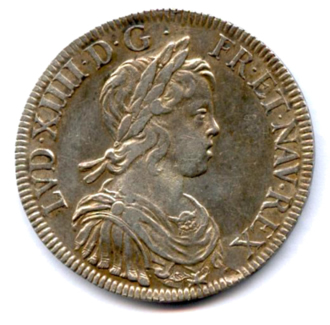 Écu d'argent à la mèche courte, 1644. 27,37g