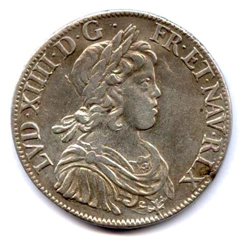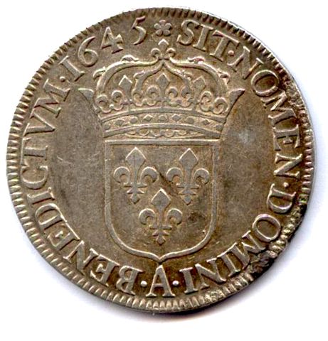Écu d'argent à la mèche courte, 1645. 27,19g