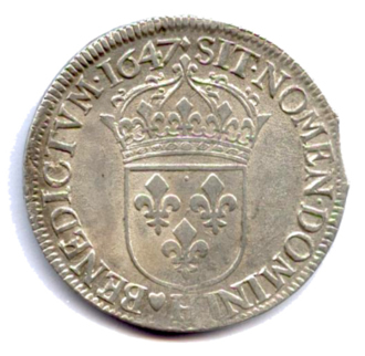 Écu d'argent à la mèche longue, 1647. 27,08g