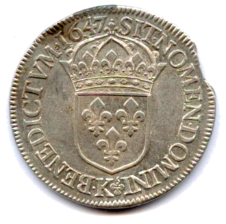 Écu d'argent à la mèche longue, 1647. 26,93g