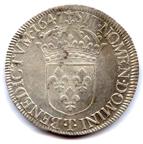 Écu d'argent à la mèche longue, 1647. 27,22g