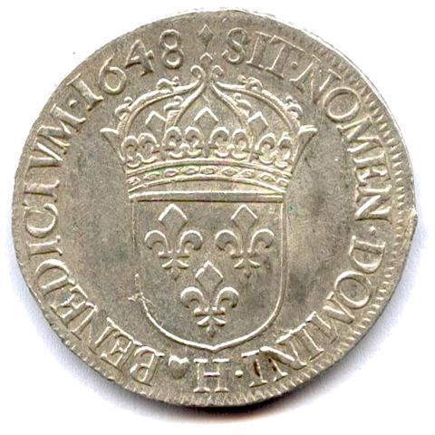 Écu d'argent à la mèche longue, 1648. 27,12g