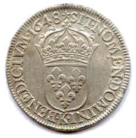 Écu d'argent à la mèche longue, 1648. 27,03g