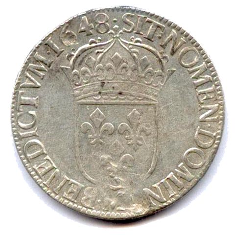 Écu d'argent à la mèche longue, 1648. 27,27g. M = Toulouse. Beau.