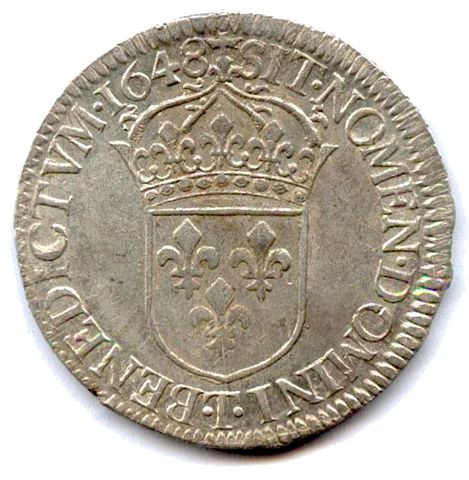 Écu d'argent à la mèche longue, 1648. 27,19g