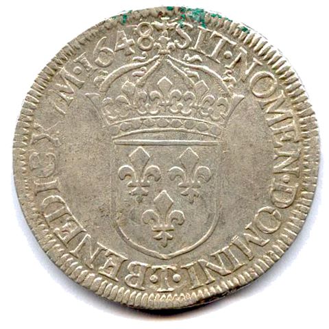 Écu d'argent à la mèche longue, 1648. 27,19g