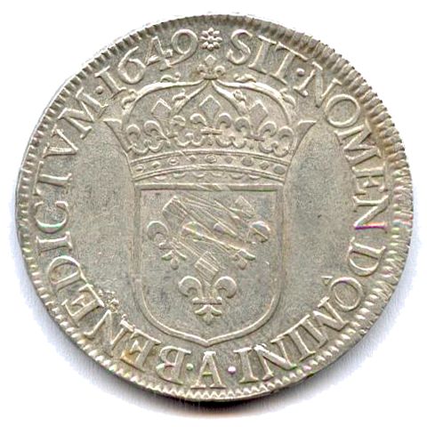 Écu d'argent à la mèche longue, 1649. 27,23g