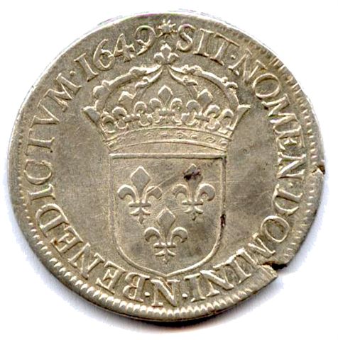 Écu d'argent à la mèche longue, 1649. 27,27g