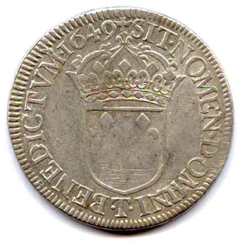 Écu d'argent à la mèche longue, 1649. 27,12g