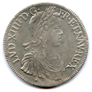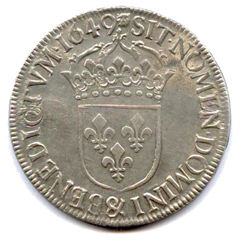 Écu d'argent à la mèche longue, 1649. 27,07g