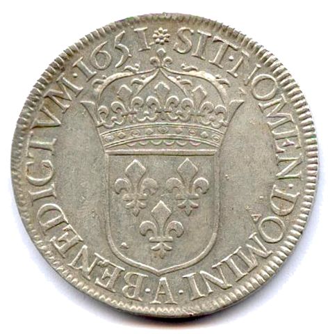 Écu d'argent à la mèche longue, 1651. 27,32g