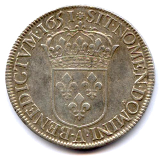 Écu d'argent à la mèche longue, 1651. 27,34g