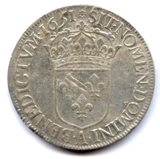 Écu d'argent à la mèche longue, 1651. 27,24g