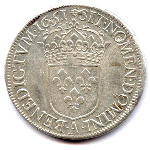 Écu d'argent à la mèche longue, 1651. 27,25g