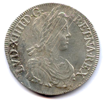 Écu d'argent à la mèche longue, 1651. 26,90g