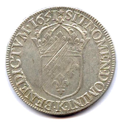 Écu d'argent à la mèche longue, 1651. 27,16g