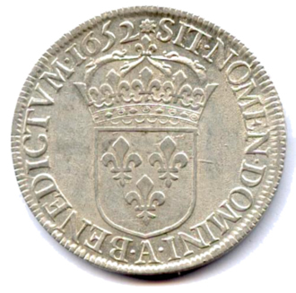 Écu d'argent à la mèche longue, 1652. 27,24g