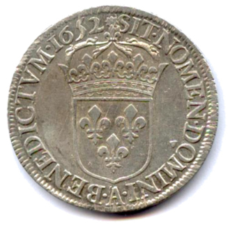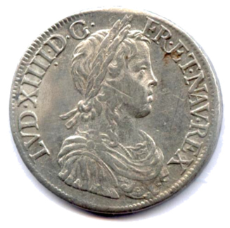 Écu d'argent à la mèche longue, 1652. 27,31g