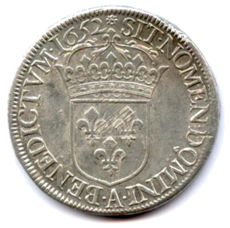 Écu d'argent à la mèche longue, 1652. 27,32g