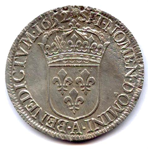 Écu d'argent à la mèche longue, 1652. 27,09g