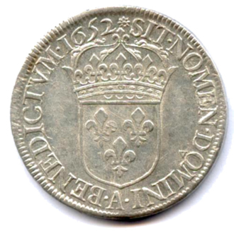 Écu d'argent à la mèche longue, 1652. 27,22g